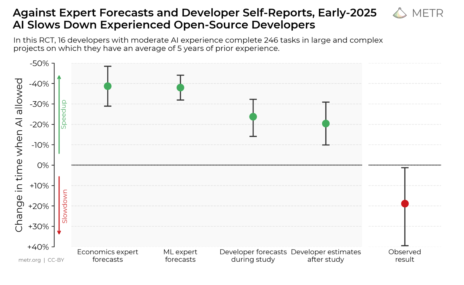 在这个月初参加的 ai-dlc 中, 有提到一个有趣的 vibe coding 工作效率提升的调查统计, 结论是 对于用户而言感觉是提高了工作效率, 但是从客观的评估来看工作效率是降低了的.
